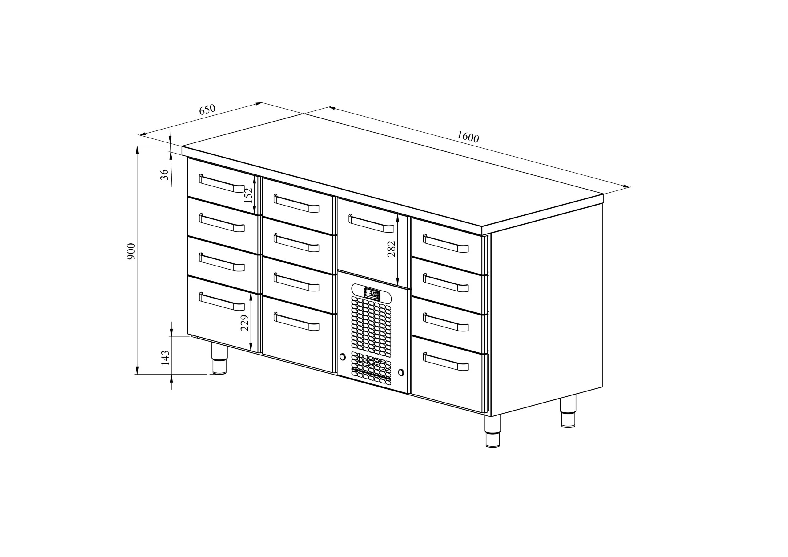 cold counter is intended for storage of foodstuffs at +2 °C to +8 °C